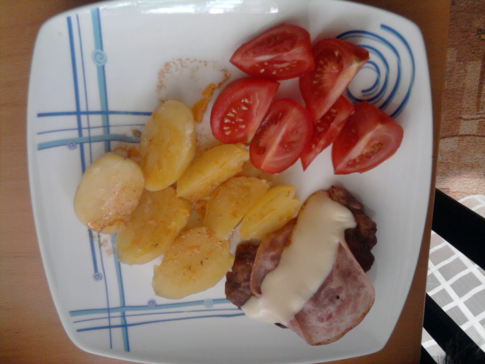 obed-brambor,veprovy platek krkovice se sunkou a syrem,rajce