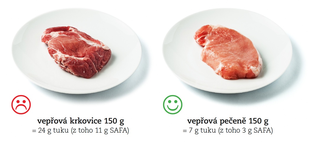 Když si místo 150 g vepřové krkovice dáte vepřovou panenku nebo pečeni, ušetříte 17 g tuku.