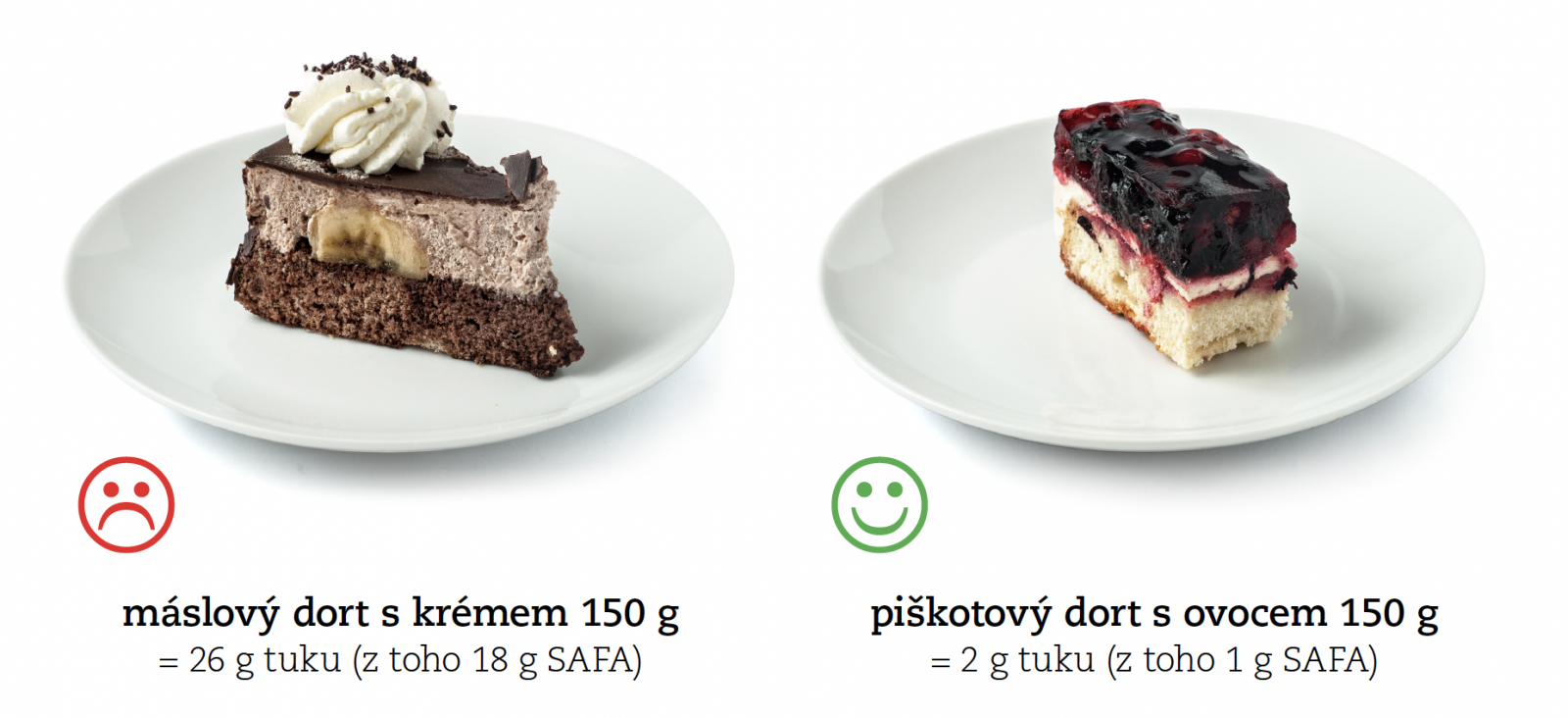 Když si místo máslového dortu dáte piškotový dort s ovocem, ušetříte v jednom kousku více než 20 g tuku.