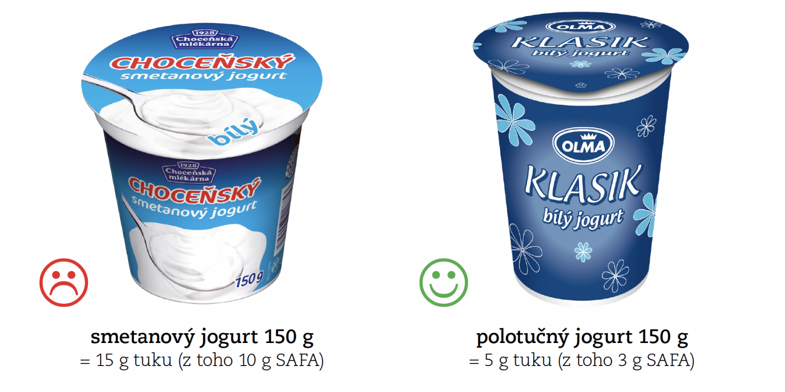 Když si místo smetanového jogurtu dáte polotučný, v 1 kelímku ušetříte 10 g tuku.