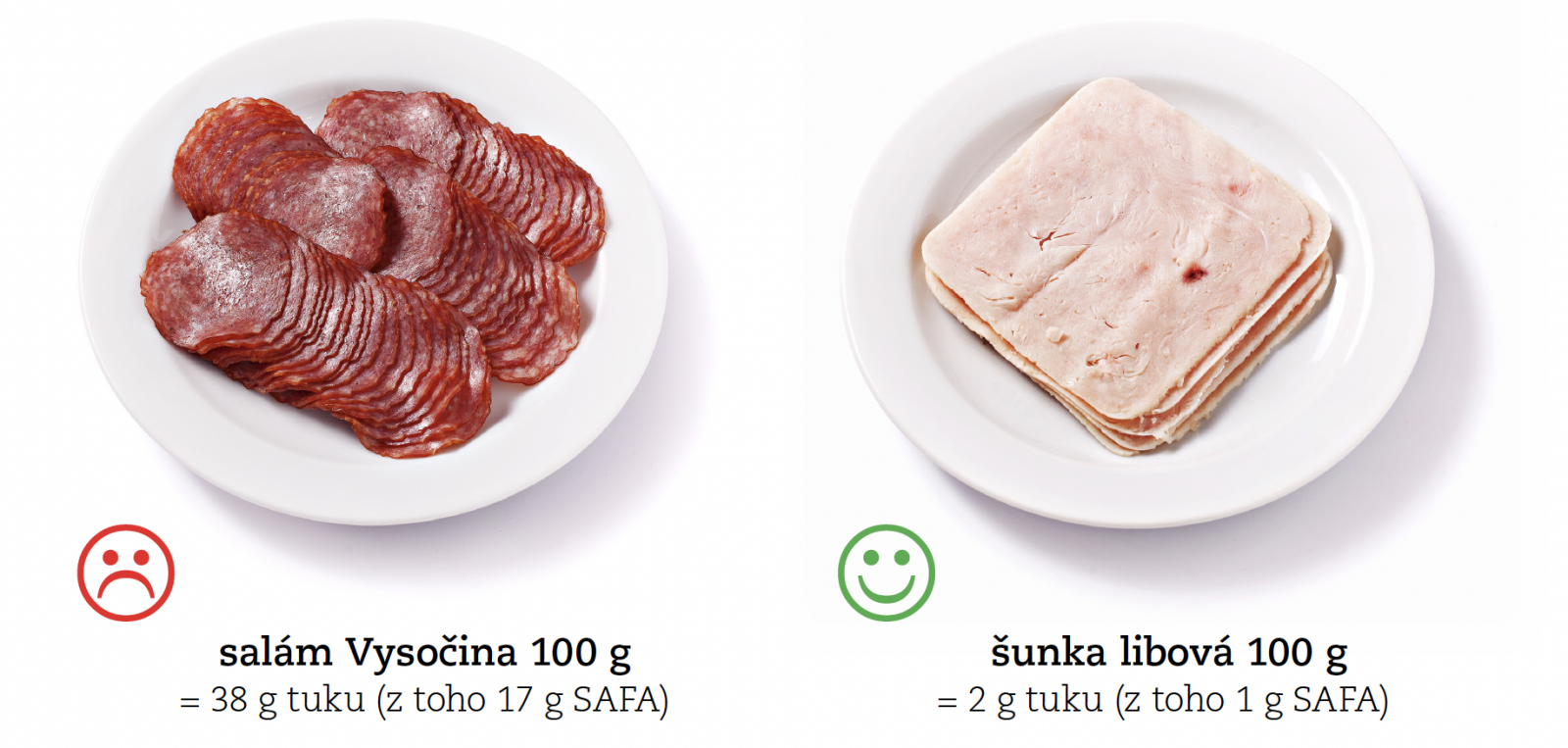 Když si místo salámu dáte libovou šunku, ve 100 g ušetříte 36 g tuku.