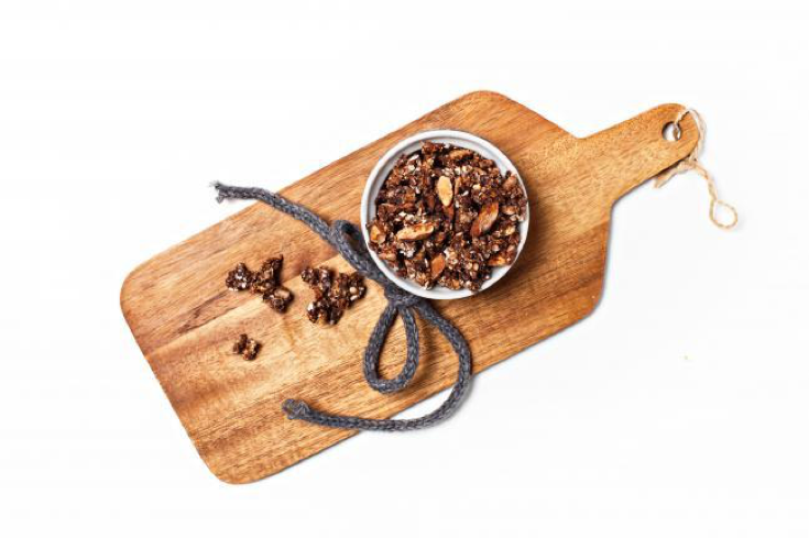 Důležité je jedno pravidlo – čokoládu s granolou nepečte. Nasekejte ji a vmíchejte do směsi až ve chvíli, kdy upečenou a horkou granolu vyndáte z trouby. Díky domu se čokoláda rozpustí, ale nezhořkne. Popis přípravy granoly najdete velmi podrobně třeba tady, u oblíbené blogerky Florentýny.