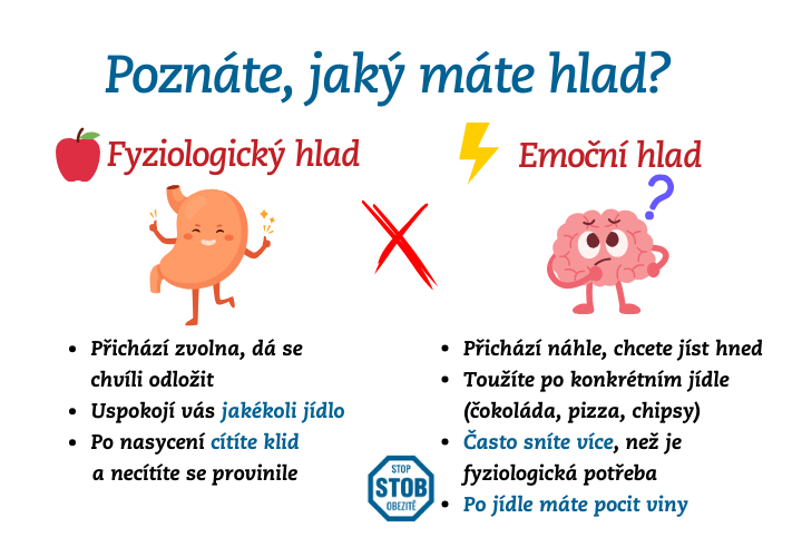 Stejně důležité je všímat si souvislostí jedení s psychikou. Spouštěčem k jídlu nebo přejídání nemusí být vždy fyziologický hlad, ale také únava, smutek, radost, stres či osamělost. Když se naučíte rozlišovat mezi fyziologickým a emočním hladem, máte mnohem větší šanci své stravování dlouhodobě zvládat.