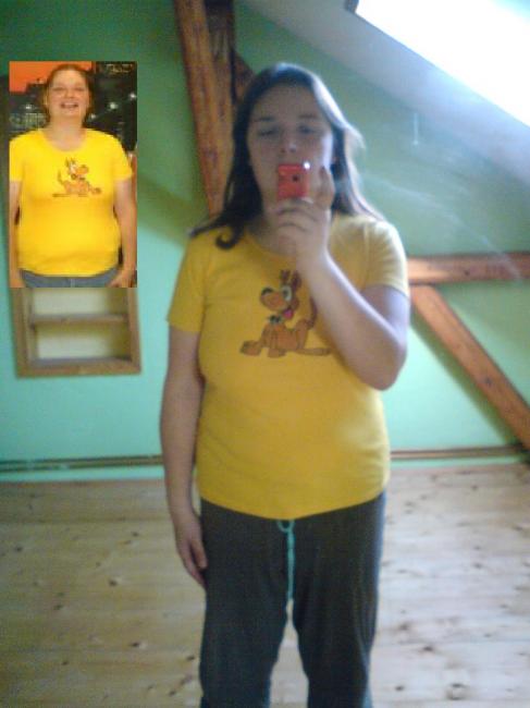 Luci - ty jsi normálně chudák - všechno na tobě plandá /ty kalhoty/. S tím tvým tempem - se to asi fakt nedá - neustále kupovat menší a menší věci. Co je ti dnes akorát - za měsíc je ti velké.