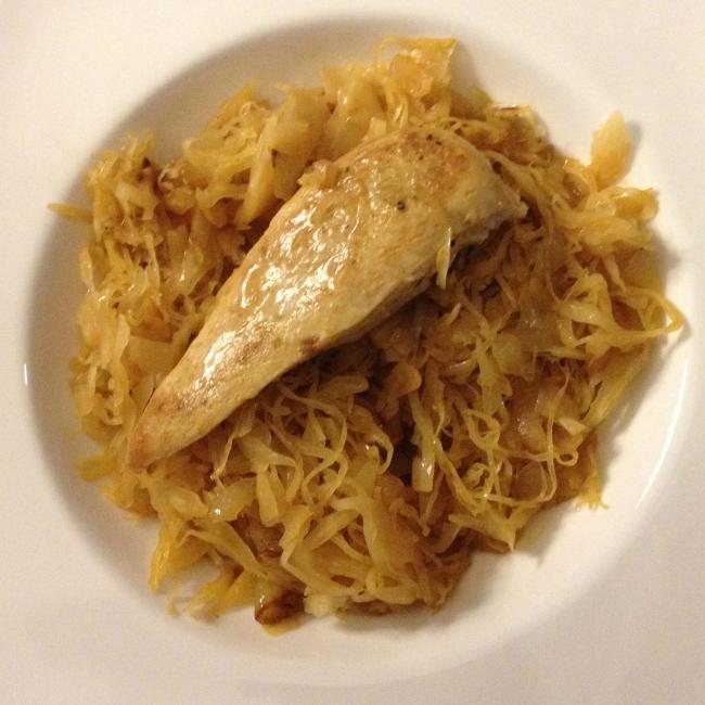Kuřecí maso pečené společně se zelím je vynikající! Používám k tomu účelu stehenní kuřecí řízky, ale pravda je, že prsní jsou dietnější.