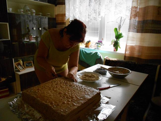 Ten dort je nádherný :-))), korpus jste pekli v pekárně? Asi se do normální trouby nevejde. Připadá mi to, jako pečení na svatbu :-))). Babička je opravdu hodně obětavá.