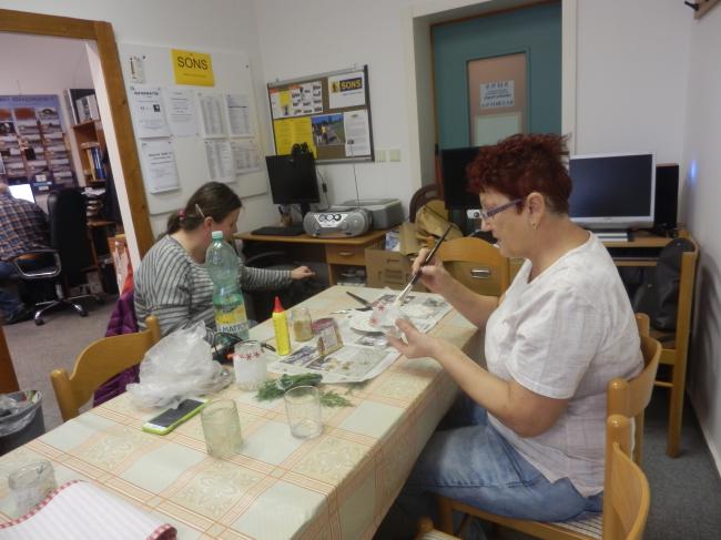 Fotogalerie: Pečení perníčků v SONSU Popis: Tak v pondělí jsme připravili těsto, dnes jsme upekli, nakonec jsme udělali celkem dvacet pět stromků. Tak si každý odnesl 2-3 stromky a ještě jsme stihli lampičky a také si každý odnesl dva kusy. Jsem ráda že to mám za sebou. Nevidomí to mají jako dárky a mají s toho radost, že budou mít překvapení pro maminky. Když končíme každý tak pospíchá a úklid nám zůstane.