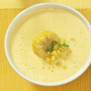 mléko a vodu přivedeme do varu, přidámě kukuřici, polévkové koření sušené bez glutamátu, provaříme, rozmixujeme, osolíme, opepříme, muškát. ořísek, přidáme smetanu a lžící citronové štány, už nevaříme. Podle http://www.igurmet.cz/recepty/polevky/kremove/kukuricny-krem-4423/ trochu kaloricky ošizené