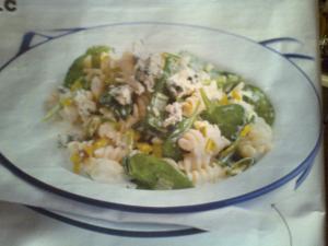Olej rozehřejeme na pánvi, přidáme cibuli na proužky a necháme změknout. Přidáme šunku, česnek a žampiony. Poté přidáme špenát a necháme lehce zavadnout. V hrnci necháme rozpustit máslo, přidáme hladkou mouku a rozmícháme na kašičku. Přilijeme smetanu a přidáme nastrouhaný sýr. Špenát a sýrovou omáčku smícháme s uvařenými těstovinami